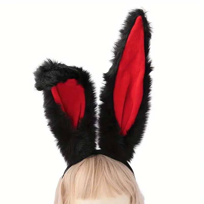 Fluffy Black and Red Rabbit ears on headband.