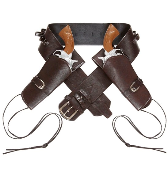 Designed for both style and practicality, the set includes a sturdy adjustable belt and two brown holsters, allowing you to complete your classic western outfit with ease.
