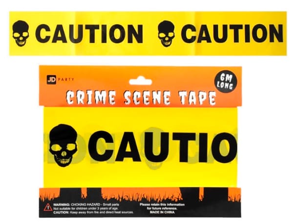 Caution Caution Tape with Skull Heads, Black & Yellow, 6m / 236in in length and is 7.5cm wide