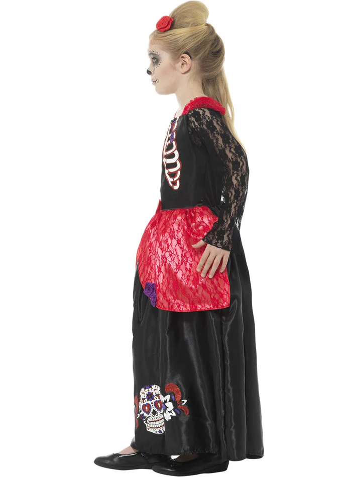 Put your best sugar skull face on and get ready to party Day of the Dead style this Halloween when you wear this cute deluxe Day of the Dead girls costume. This sugar skull costume for girls is perfect to wear while collecting candy when your trick-or-treat!