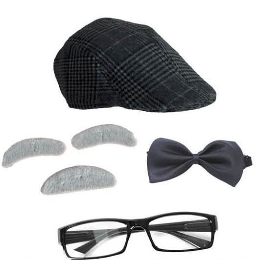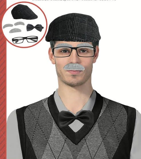 Eyebrows & Moustache: light grey, self adhesive, furry texture