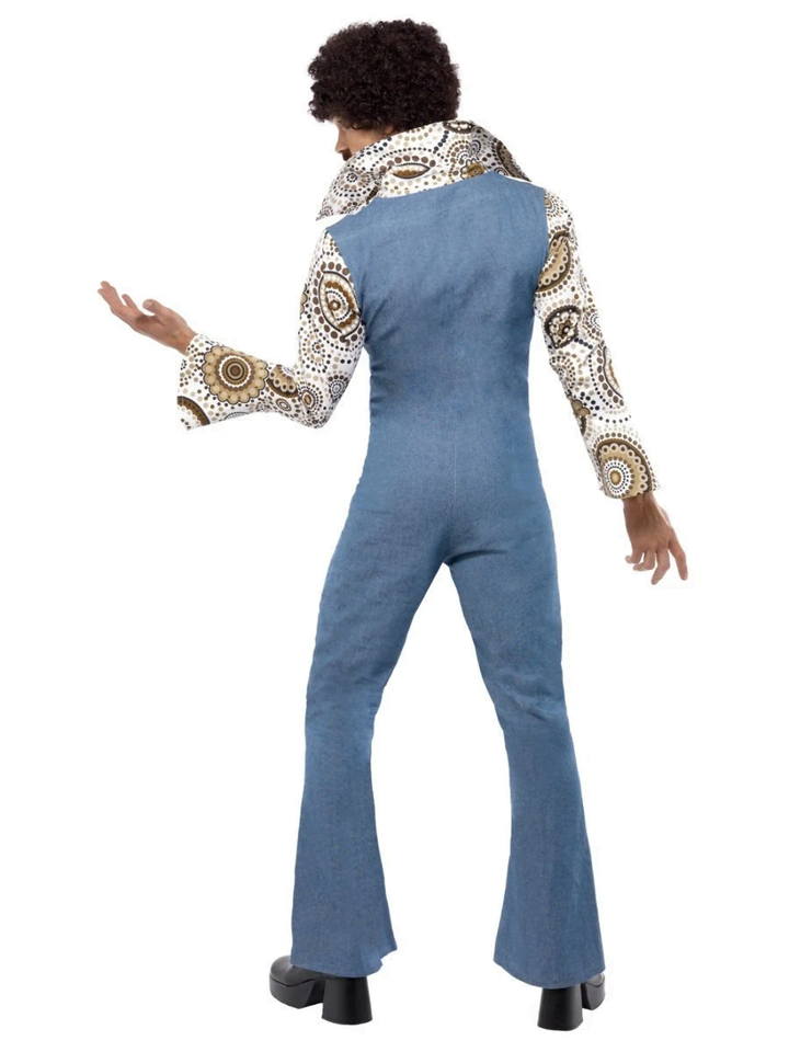 Get your groove on in this awesome men’s one piece flared jumpsuit disco costume. You’ll be sure to stand out under the disco ball in this mens groovy 70s costume!