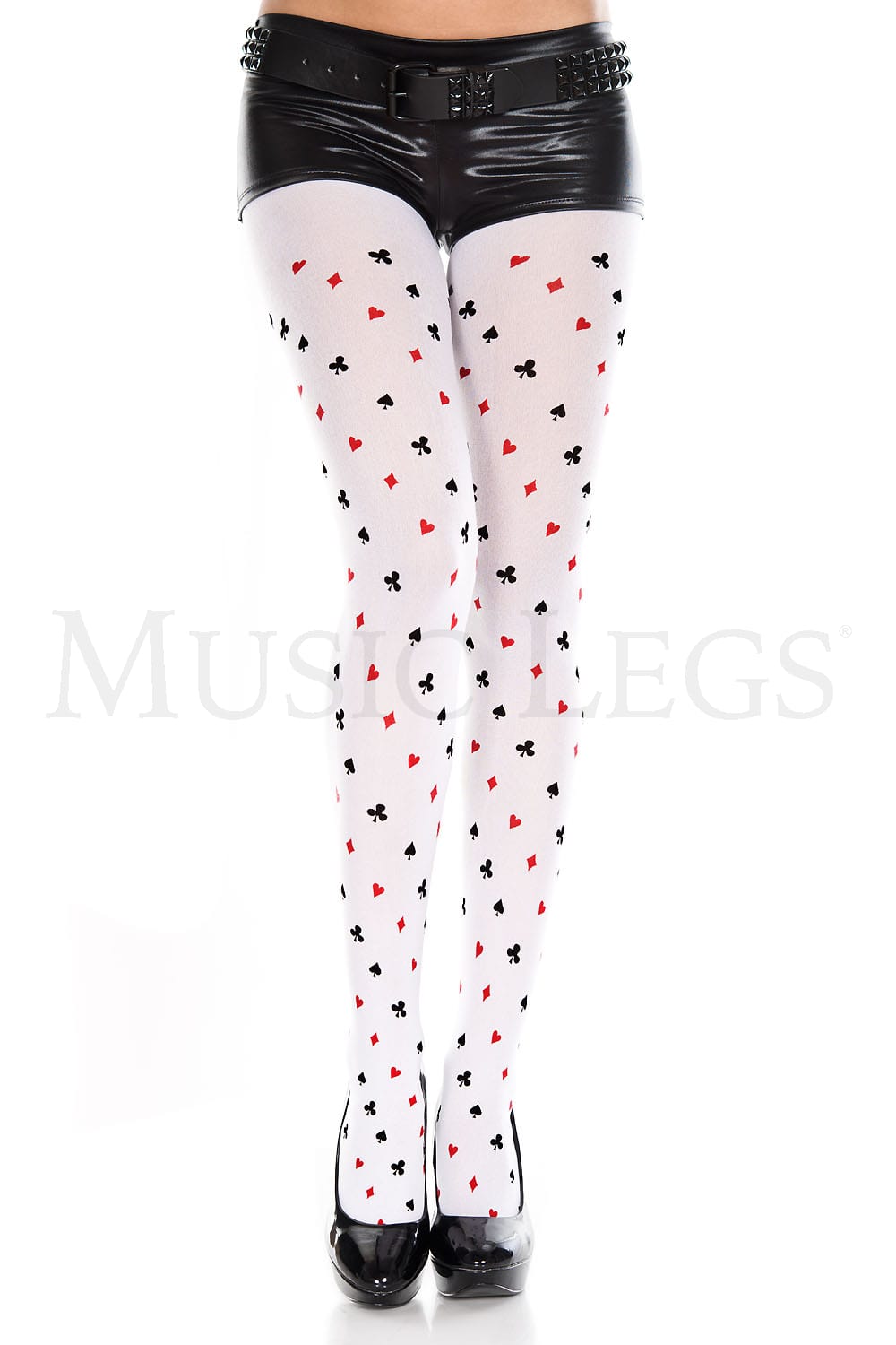 Give your outfit a pop of colour with our Hearts Clubs Diamonds Spades Design opaque tights.