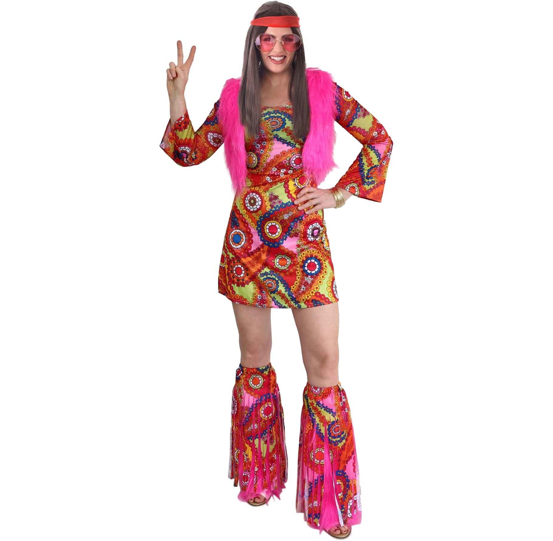 Included leg warmers are made from the same pink faux fur fabric, have a matching paisley print overlayed with an elastic band at the top to allow for sizing flexibility.