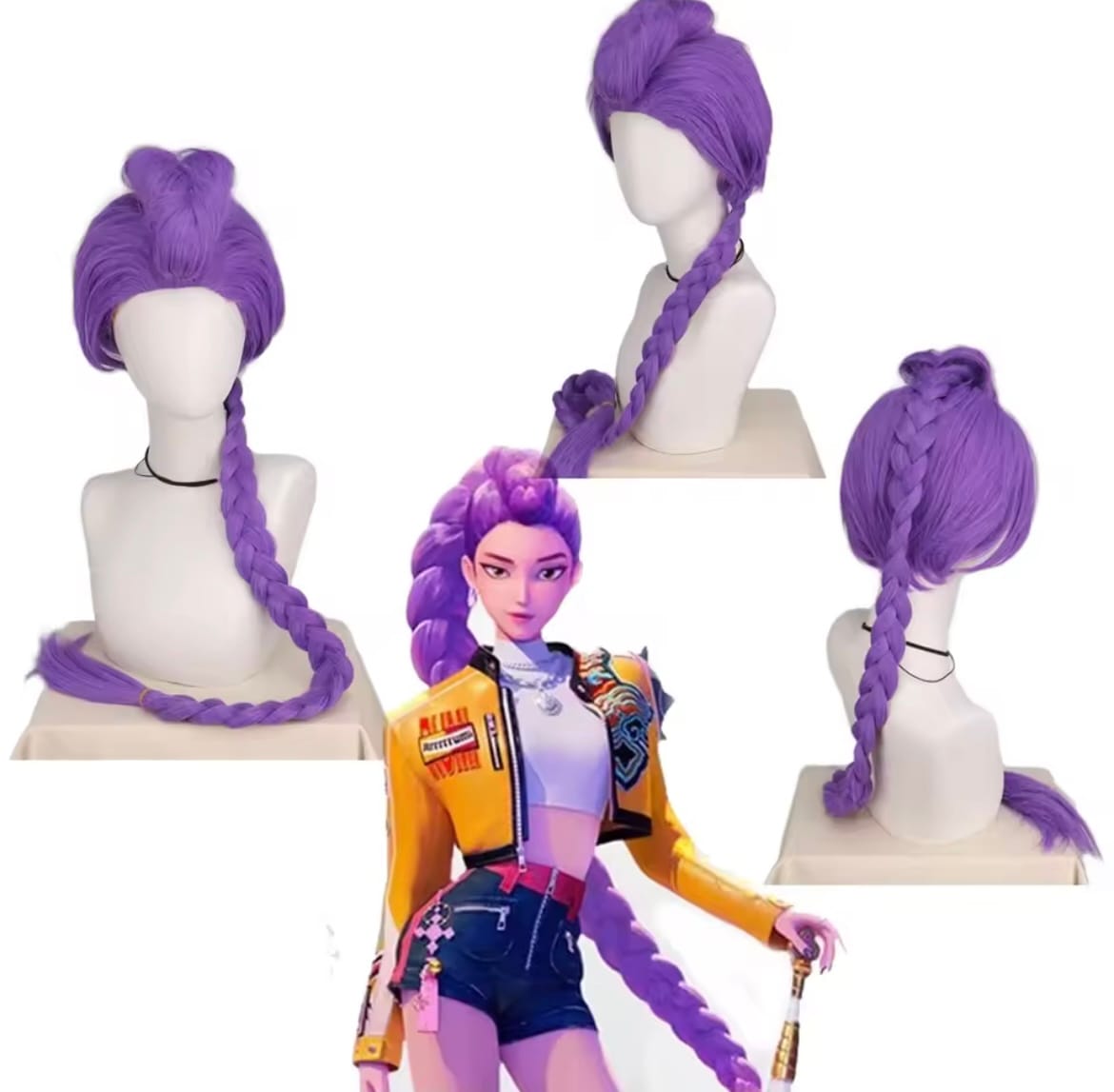Easy to wear, versatile, and instantly recognizable, the Kpop Rumi Wig is a must-have for anyone looking to embody this bold, iconic character. Bring Rumi to life with every detail, from the striking purple hue to the intricately plaited ponytail, and make a statement at your next cosplay event or themed celebration. Unleash your inner Kpop star and let your style shine!
