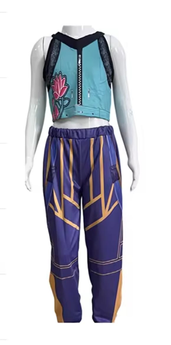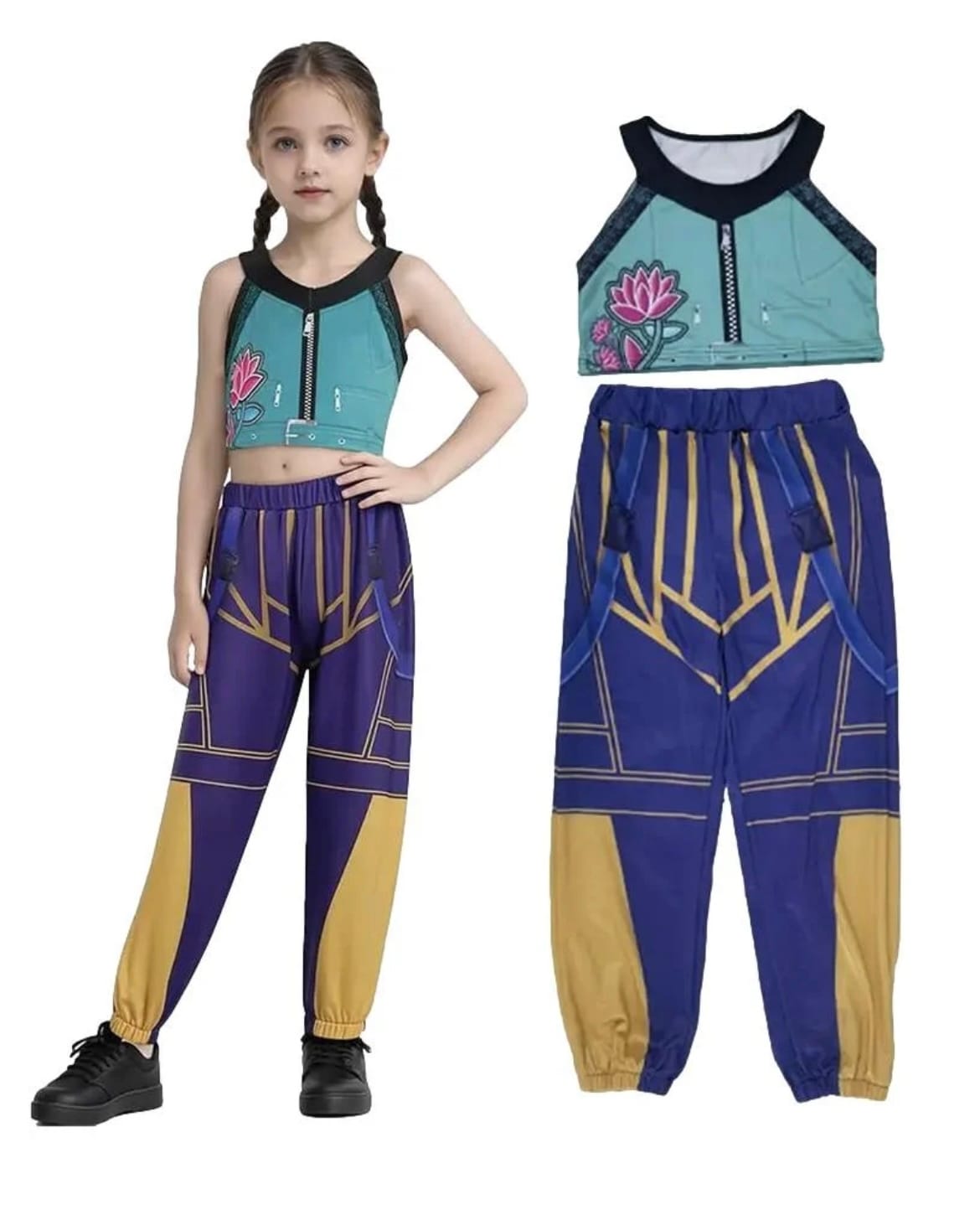 This inspired KPop Zoey costume child outfit features Zoey’s signature aqua top paired with bold blue and yellow pants. The colourful combo perfectly captures her playful yet daring look, making it instantly recognisable for fans of the movie. Crafted from lightweight, stretch polyester, the costume is both comfortable and durable—ideal for school parades, parties, or simply strutting around the living room like a K-Pop superstar.