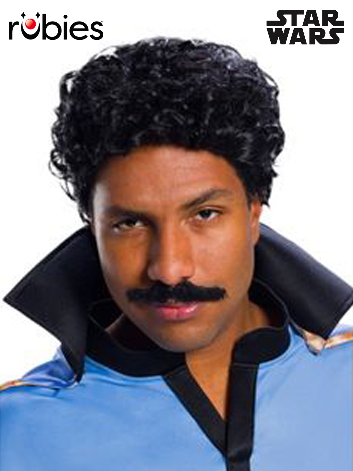Complete your galactic look with this Lando Calrissian Wig and Moustache set, inspired by the smooth-talking legend from Star Wars. Featuring a classic short afro style with tight curls, this wig perfectly captures the iconic 1970s look, now paired with a matching black moustache for the full character transformation.