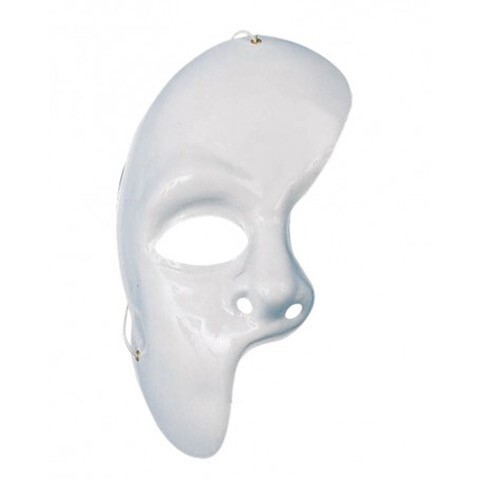 Create an air of mystery and timeless elegance with this Phantom of the Opera–style half face mask. Featuring a smooth white finish and classic asymmetrical design, this iconic mask instantly transforms any outfit into a dramatic statement. Lightweight and comfortable to wear, it secures easily with an elastic strap, allowing you to enjoy your event without distraction.