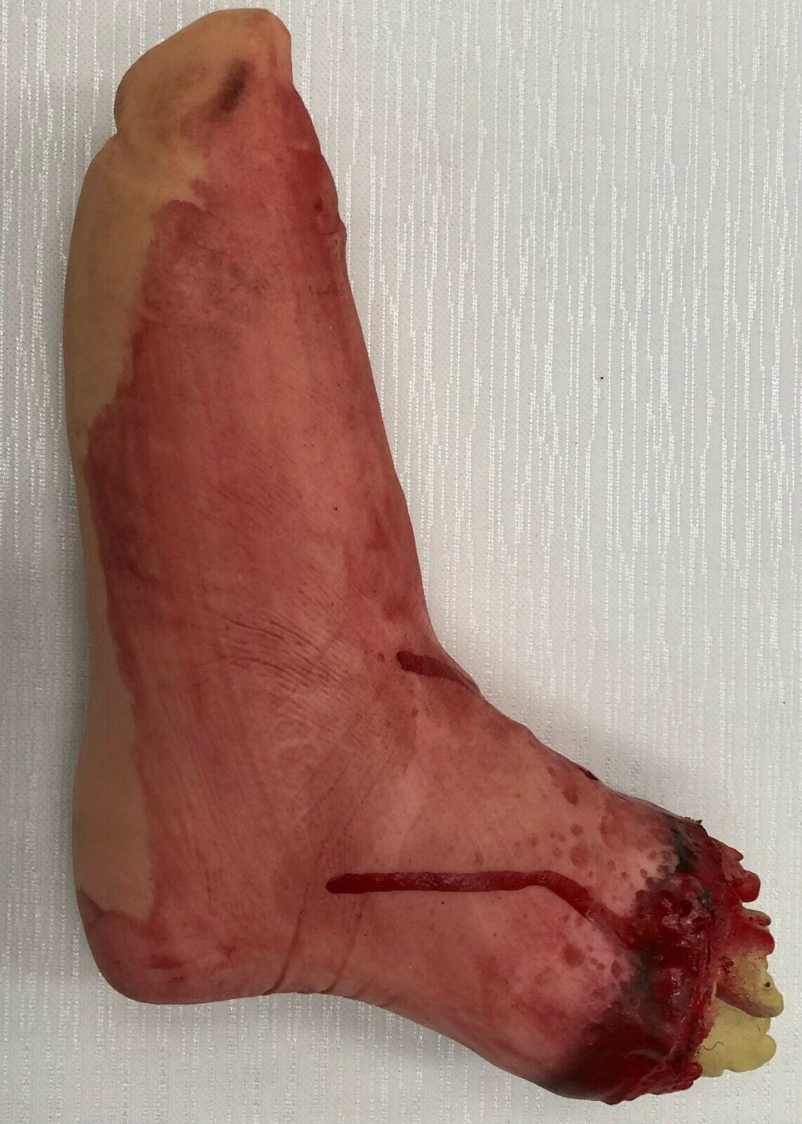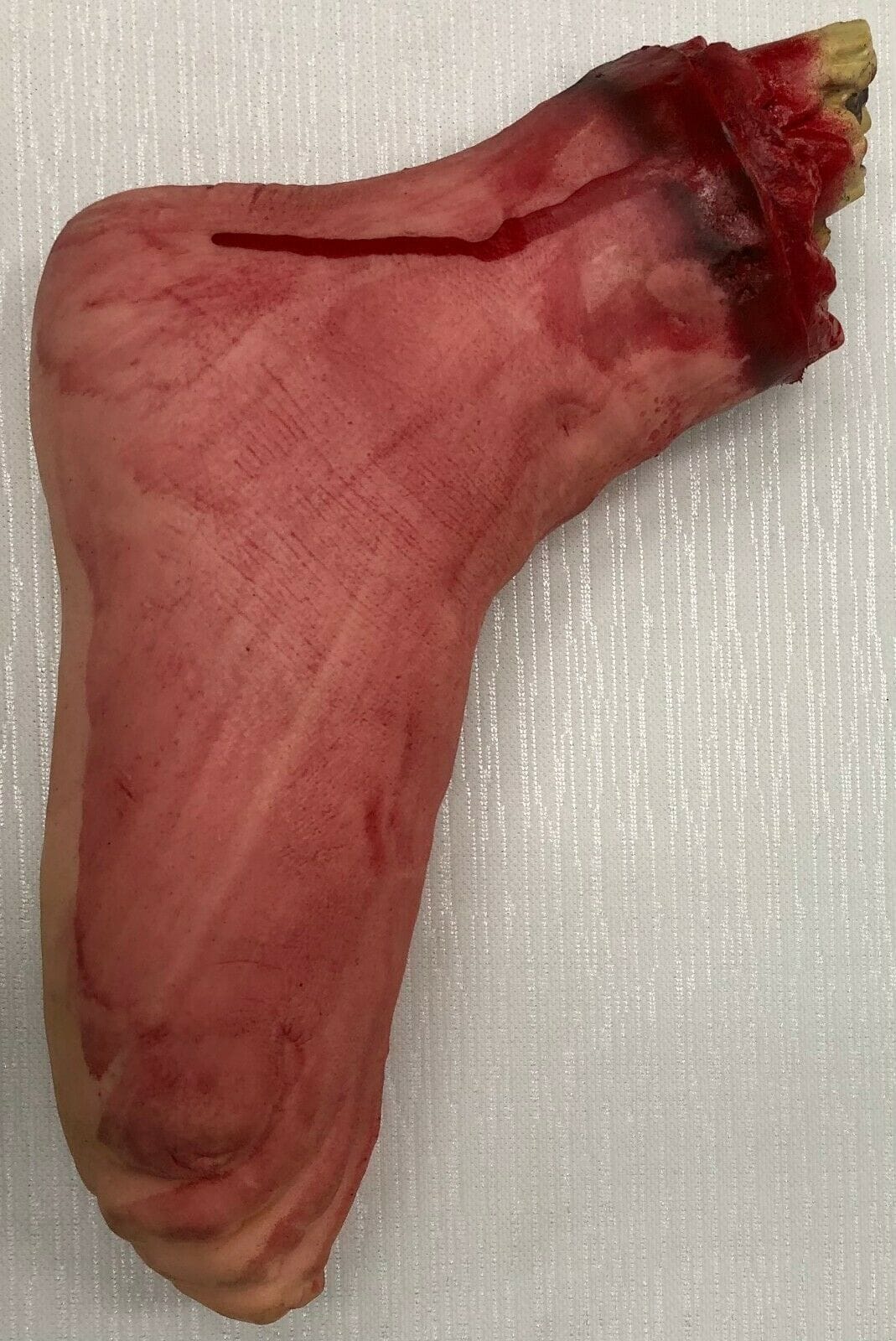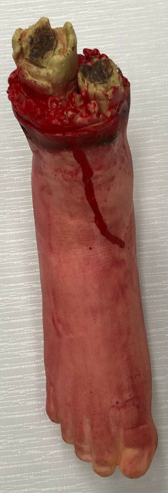This severed foot is already scary, but make it a little more frightening with some extra fake blood all over.