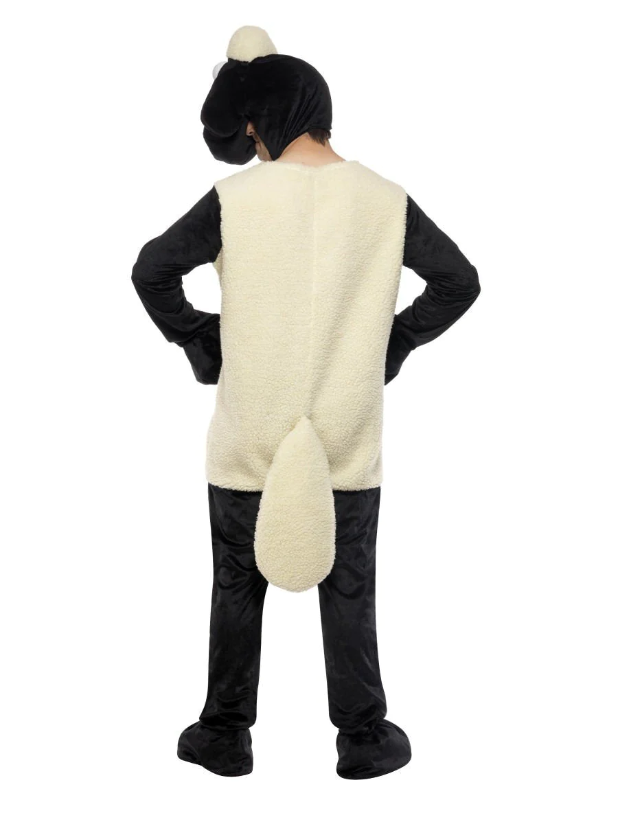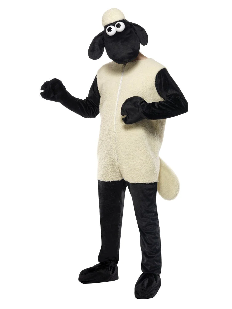 Our Licensed Adult Shaun the Sheep Costume includes a Black and Cream jumpsuit with a central cream coloured fleece section and an attached tail.