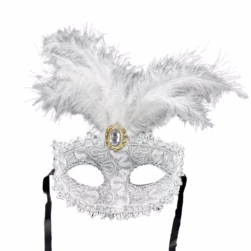 This eye mask looks fantastic on and can be worn with your favourite dress, suit and many costumes! It’s ideal for Masquerade Balls, Stage Productions, Mardi Gras,Magic and Costume Party’s .This Gorgeous Mask features: A quality silver and white glitter eye mask with matching feathers, This eye mask is approximately 18cm in width and 21cm in length. It comes complete with a black ribbon which is easily attached around your head.