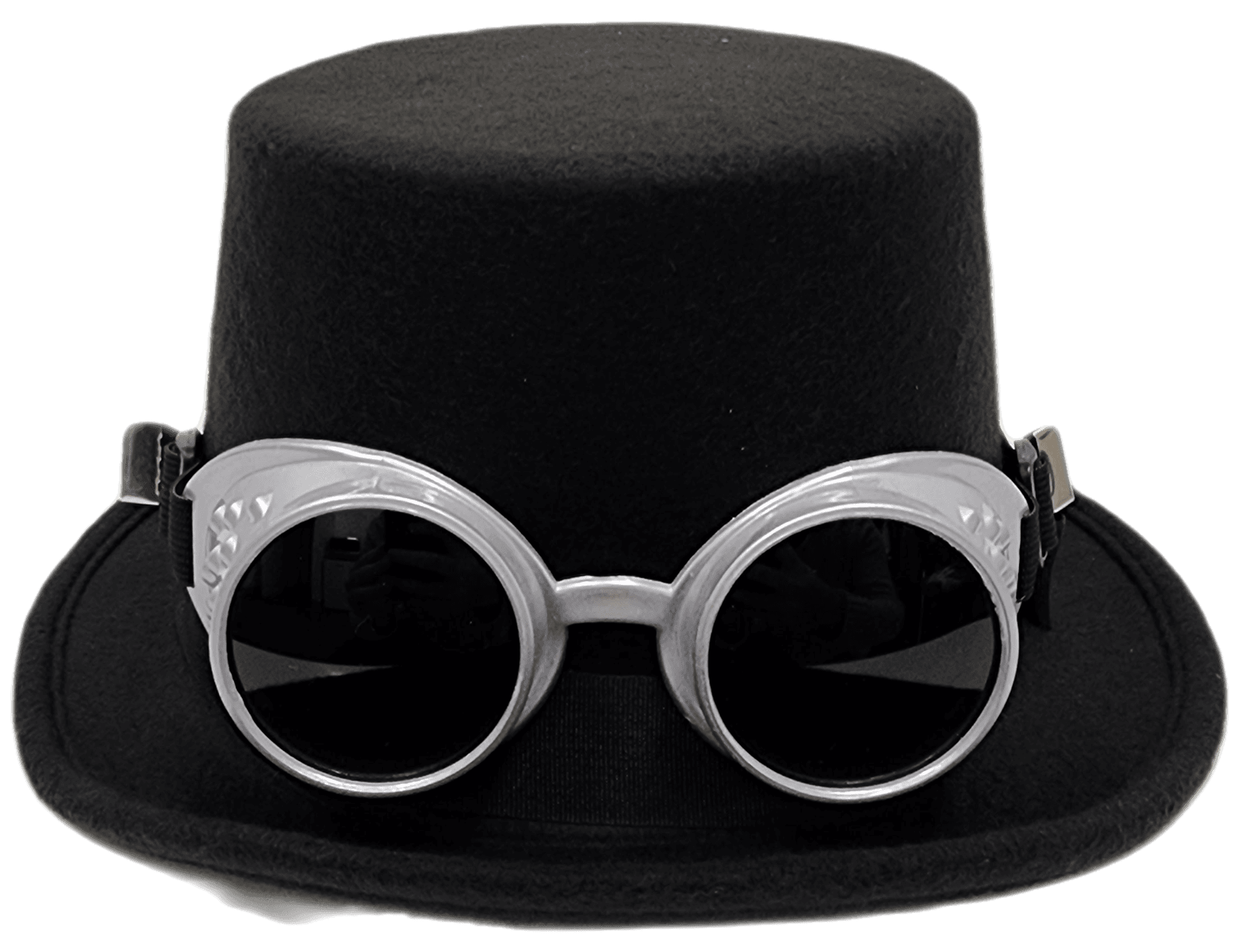 Deluxe Felt Steampunk Top Hat Includes: Deluxe steampunk top hat with useable goggles Lightweight And Comfortable to wear Includes Hat and Matching Goggles.