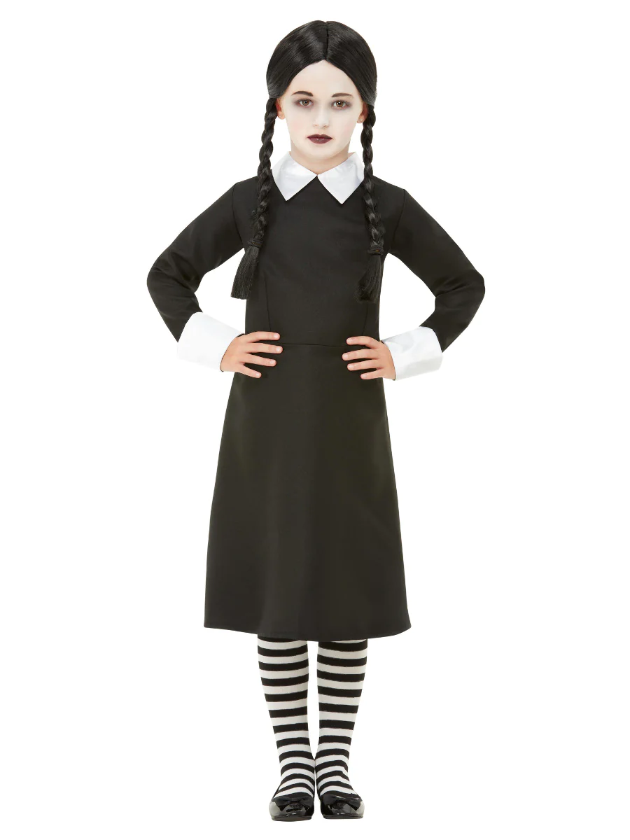 The Addams Family Wednesday Gothic School Girl Child Costume Includes Black Dress and Wig