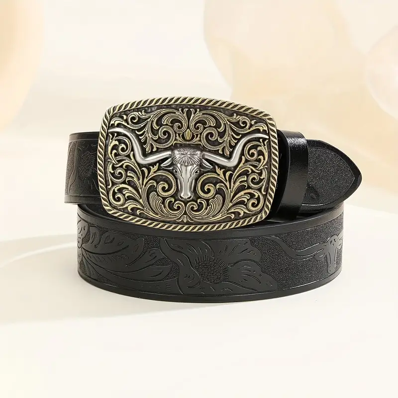 Featuring a bold bull decoration and intricate floral engraving, the adjustable length allows for a perfect fit.