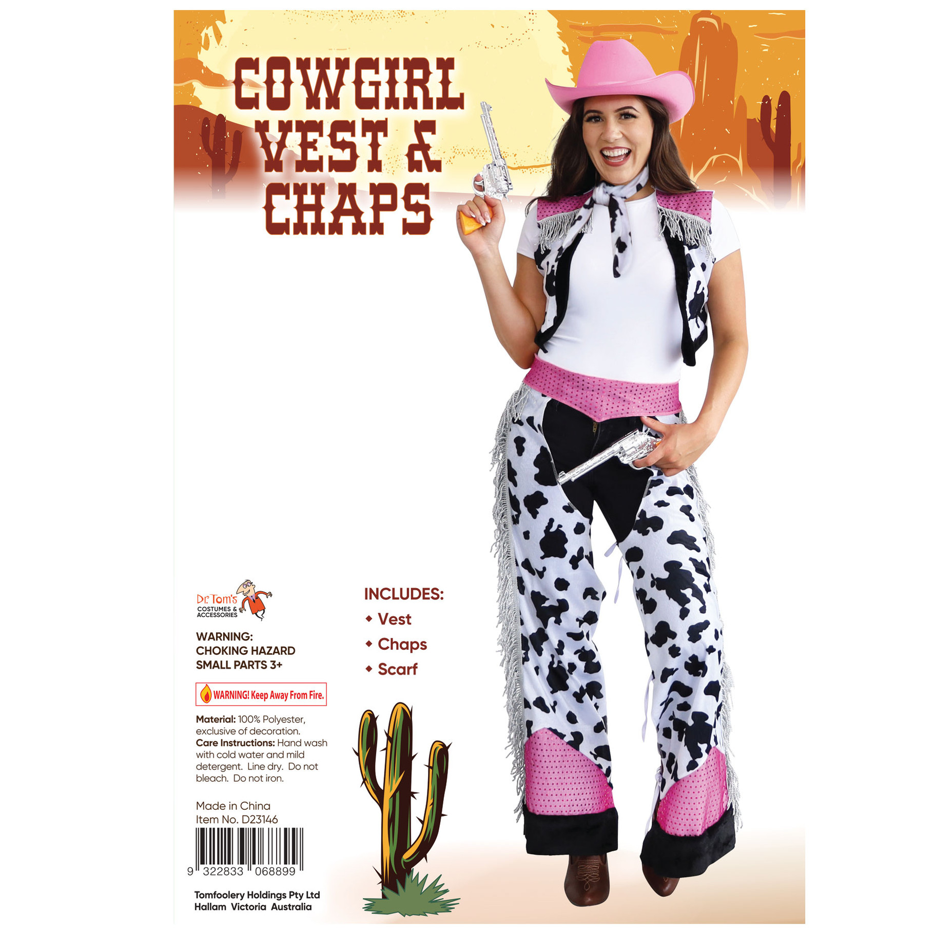 Costume Includes: Vest, Chaps and Scarf.