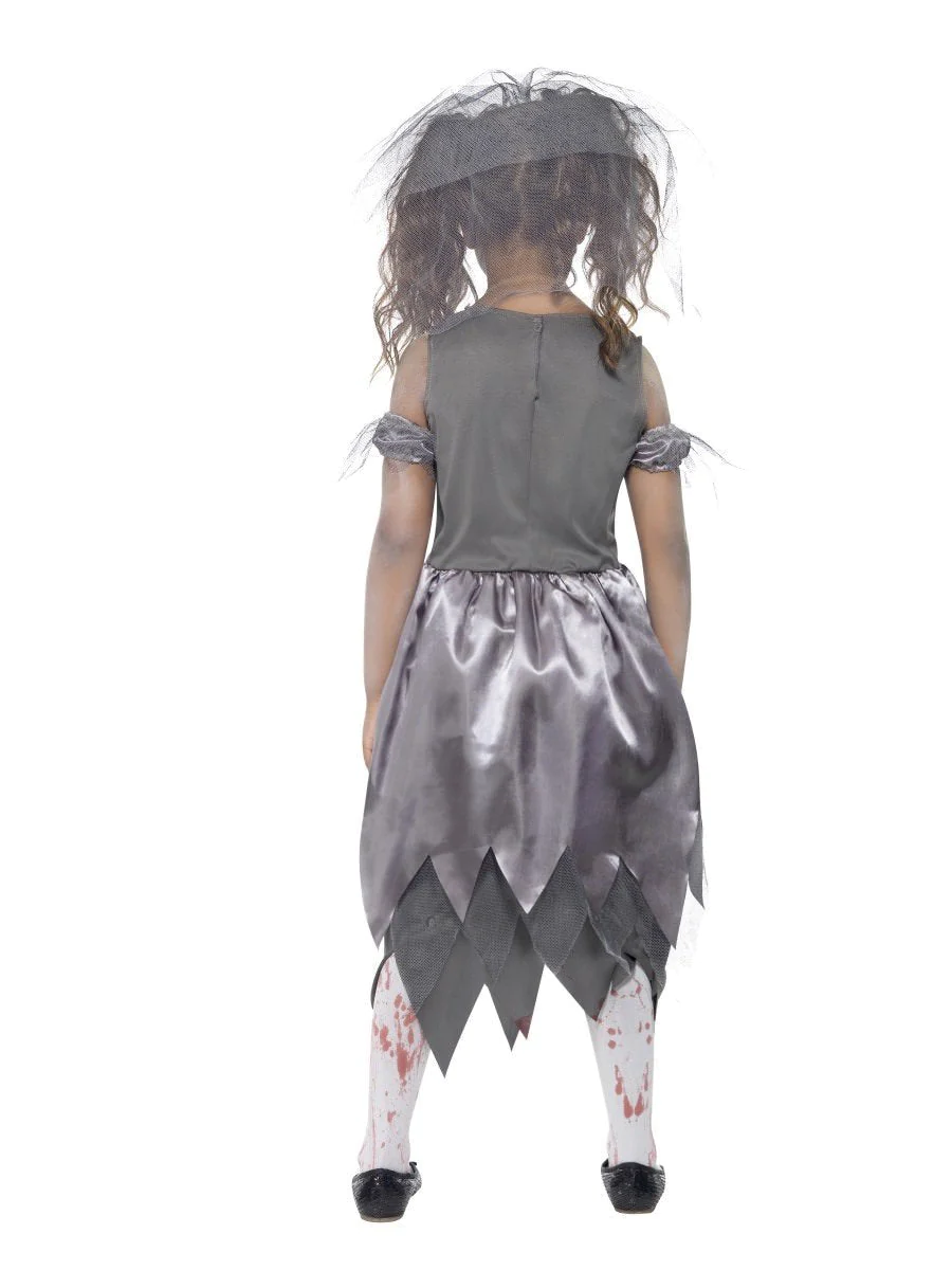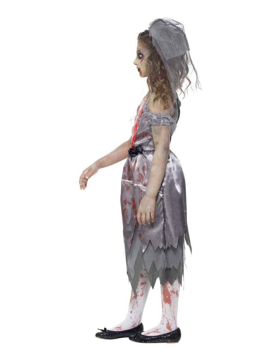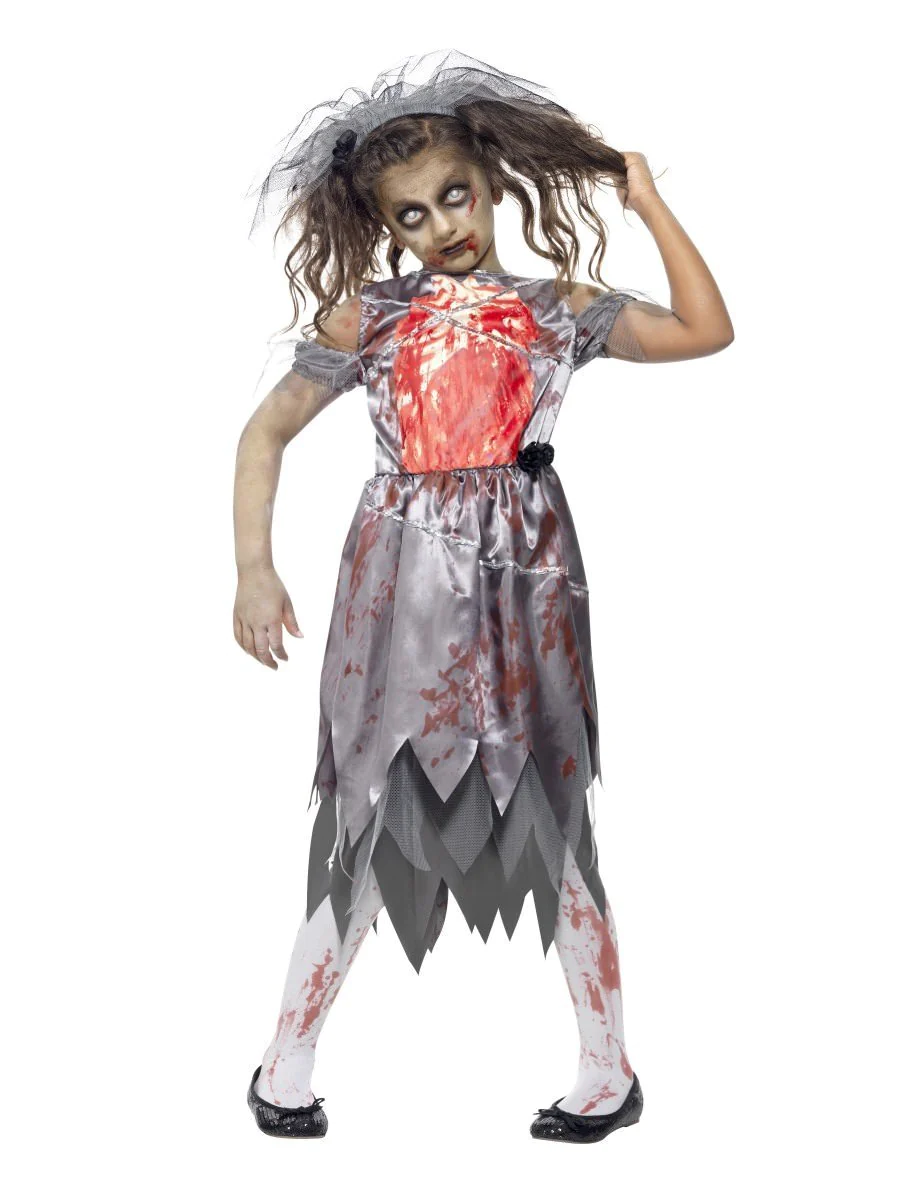 This poor zombie bride never got round to saying her vows as she feasted on all the wedding guests! Kids will love dressing up as the zombie bride in this bloodied dress, complete with a printed chest piece and veil. Forget a white wedding; this one is blood-stained!.